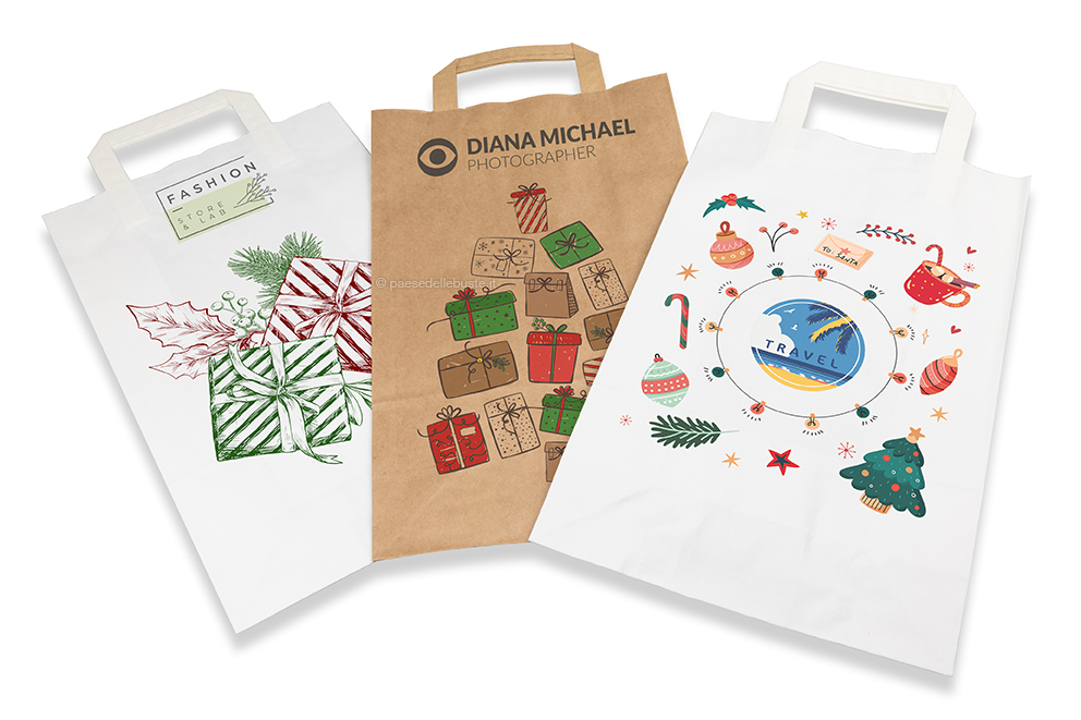 I sacchetti hanno un aspetto elegante e raffinato e sono dotati di manici piatti in carta per un comfort extra durante il trasporto. Puoi anche personalizzare i sacchetti di Natale con il tuo logo. In questo modo unisci un design festoso a un’immagine professionale, trasformando ogni sacchetto in un packaging unico e raffinato per le festività.